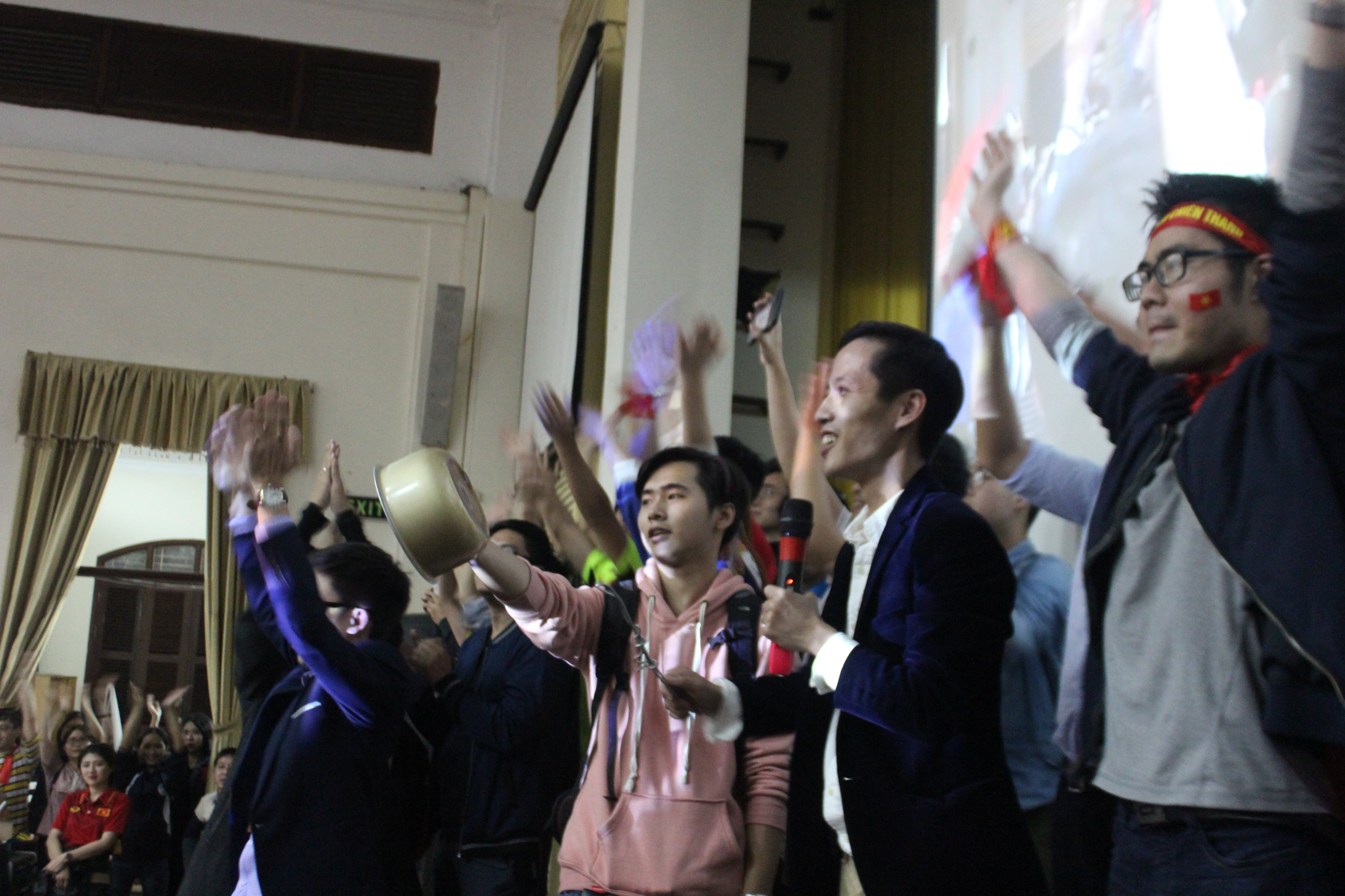 Tiếng reo hò vang động cả hội trường sau mỗi bàn thắng.