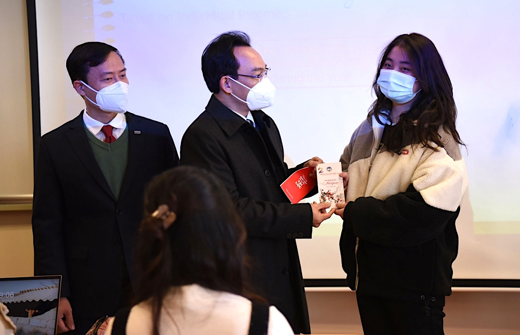 Thứ trưởng Bộ GD-ĐT Hoàng Minh Sơn cùng đoàn công tác của Bộ GD-ĐT đến kiểm tra công tác dạy học trực tiếp tại ĐH Kinh tế Quốc dân đồng thời chúc Tết thầy và trò nhà trường nhân dịp đầu năm mới.