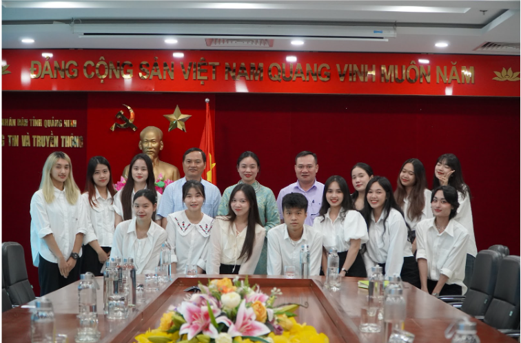 Sinh viên lớp Truyền thông chính sách K40 chụp ảnh lưu niệm cùng cán bộ Sở Thông tin và Truyền thông tỉnh Quảng Ninh