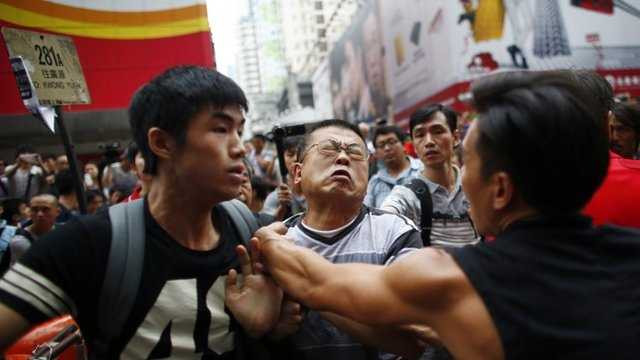 | Đã có những va chạm giữa người biểu tình và người phản đối biểu tình ở Hong Kong |