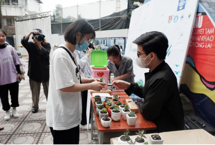 Chương trình thường niên “Vì một đô thị xanh” của sinh viên kiến trúc khuyến khích mọi cá nhân hình thành các thói quen tốt bằng cách đổi rác thải như pin cũ, giấy, lon bia, chai nhựa… để đổi lấy cây xanh, các quà tặng lưu niệm xinh xắn.