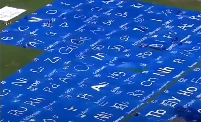 Nhằm kỷ niệm tuần lễ Hóa học Quốc gia, các sinh viên tại bang Michigan, Mỹ, cùng nhau tạo ra bảng tuần hoàn hóa học khổng lồ với chiều dài 100 m, rộng 48 m.