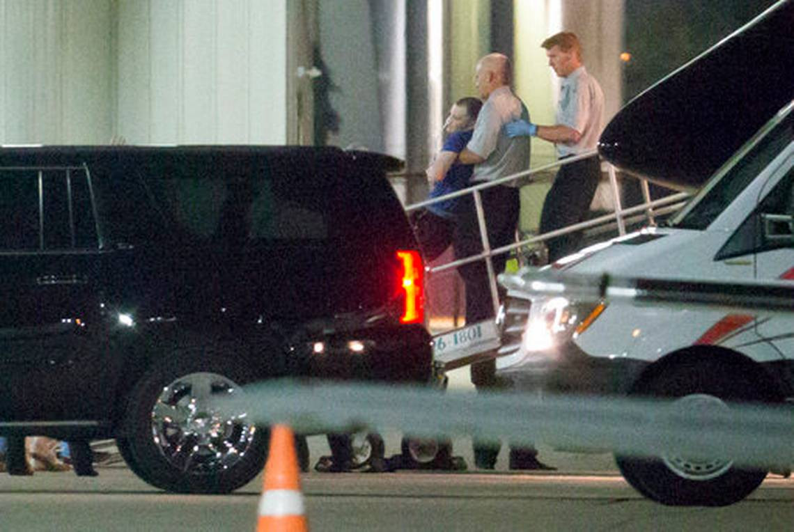 Warmbier được các nhân viên y tế khiêng từ máy bay xuống một xe cứu thương trước khi được đưa tới bệnh viện.