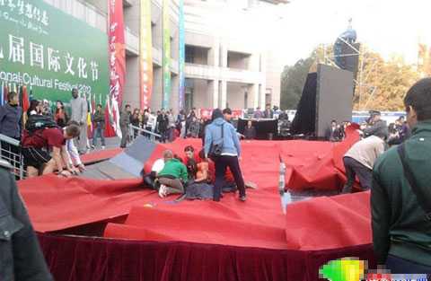 Những sinh viên có mặt, người lấy điện thoại quay phim, chụp ảnh, kẻ chạy lên sân khấu nhảy cùng, do quá đông sinh viên nhảy nhót khiến khán đài bị sập vì chịu không nổi sức bật cuồng nhiệt của giới trẻ đại học Bắc Kinh.