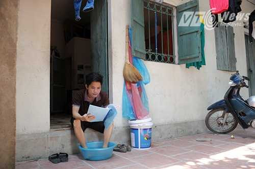 Để chống chọi với những ngày nóng kỷ lục, nhiều sinh viên đem chiếu ra hiên nhà ngồi hay đổ nước khắp sàn để mong hạ nhiệt. Tuy nhiên, những phòng trọ chật chội, san sát nhau, cao chưa đầy 3m vẫn như muốn bốc cháy.