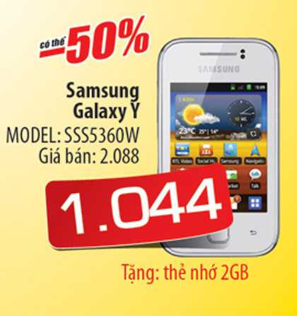 ⦁ ĐTDĐ Sam Sung Galaxy Young Duos trắng, giảm 622.000 đồng, giá chỉ còn 2.868.000 đồng, tặng thêm thẻ nhớ micro 2GB