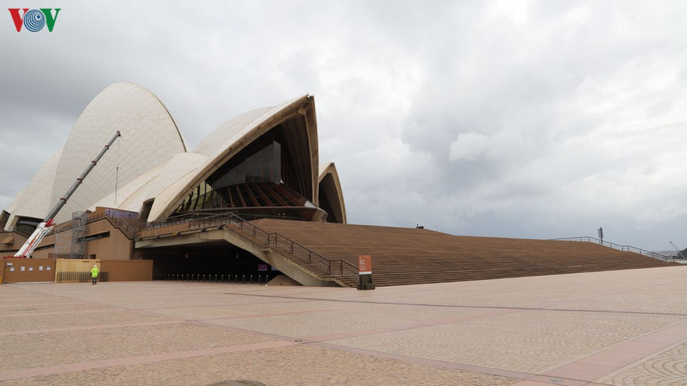 Giãn cách xã hội làm một số khu vực vốn trước kia luôn đông đúc như Sydney Opera House nay trở nên vô cùng vắng vẻ.