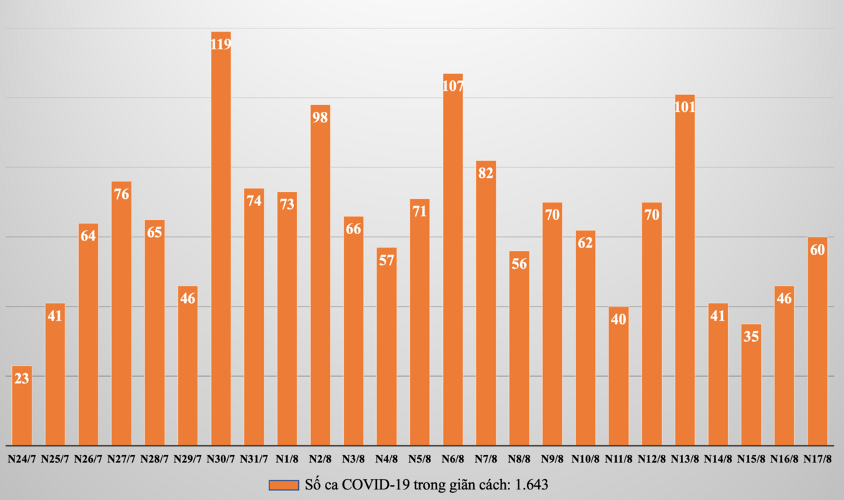 Số ca mắc ở Hà Nội từ ngày 24/7 đến 17/8, theo số liệu CDC Hà Nội. (Biểu đồ: Hà Cường)