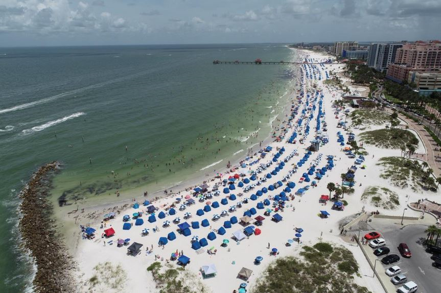 Bãi biển ở Mỹ đã mở cửa dù số ca COVID-19 tăng. (Ảnh: Reuters)
