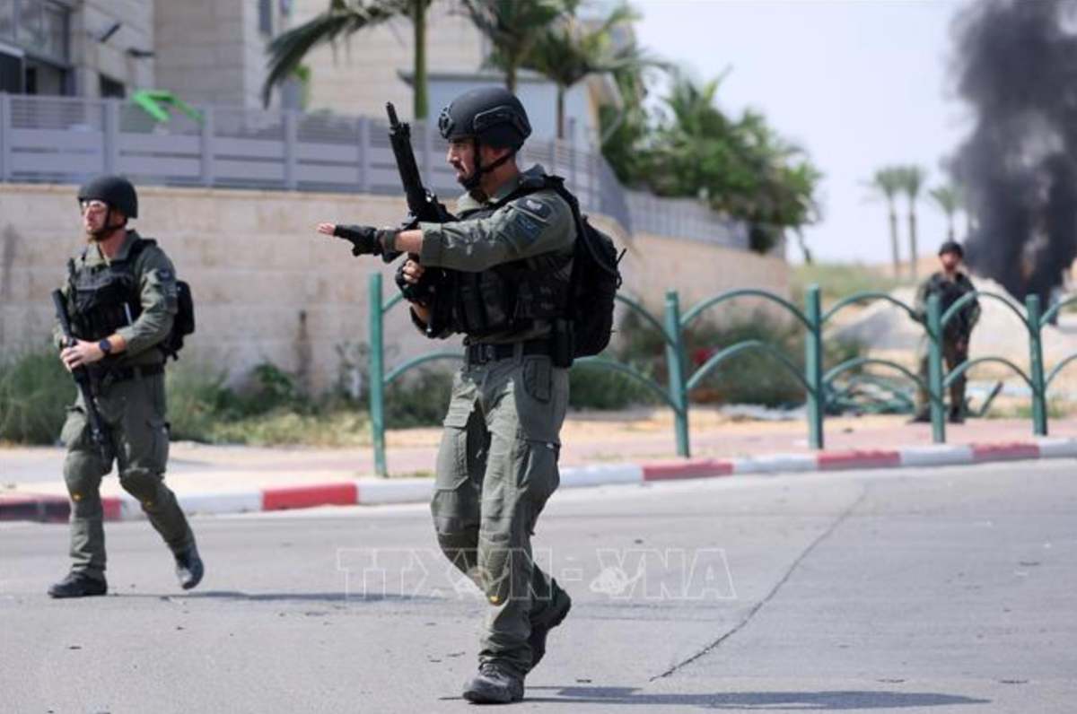 Binh sĩ Israel gác tại thị trấn Ofakim ở miền Nam Israel ngày 8/10. (Ảnh: Tân Hoa xã)