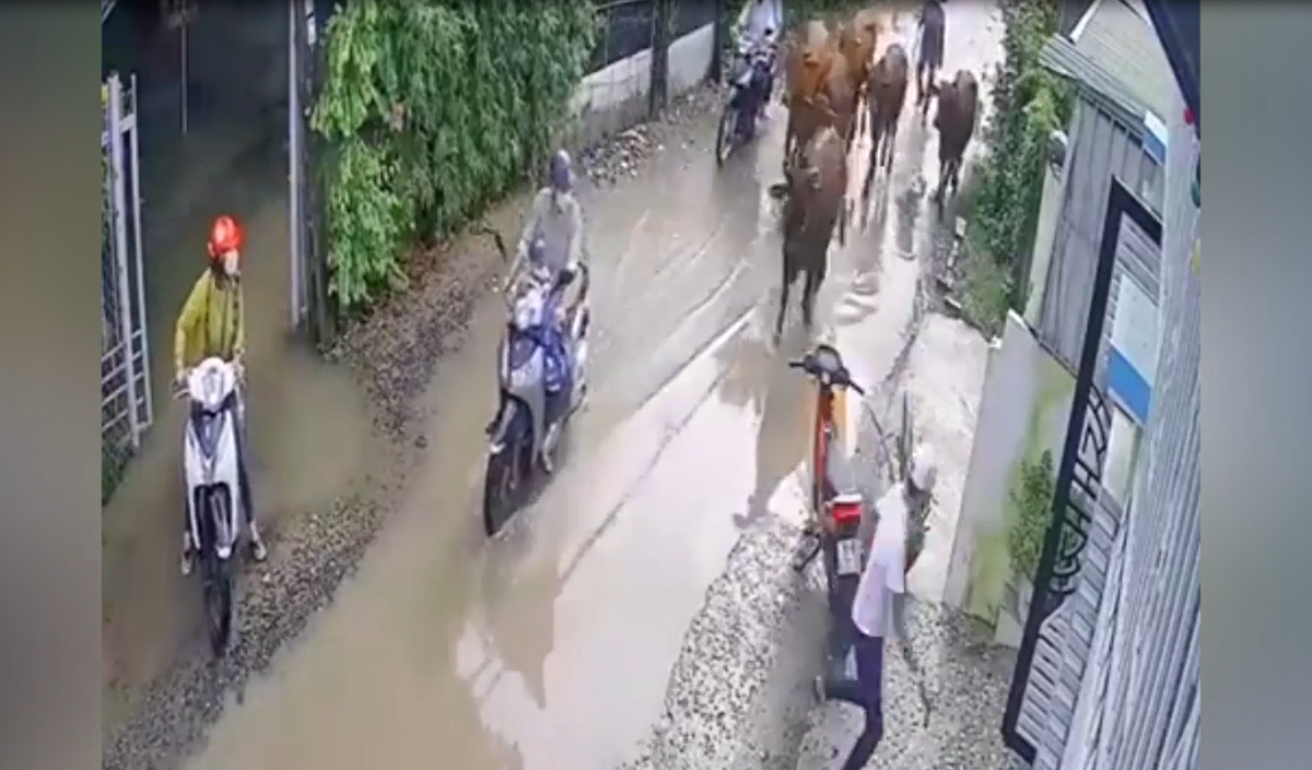 Sợ đàn bò, thanh niên bỏ cả xe mà chạy