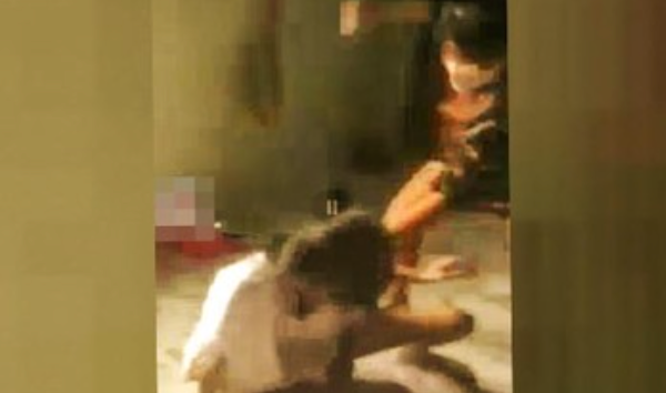 Em M. bị nhóm bạn đánh đập ngay tại nhà. (Ảnh chụp từ clip)