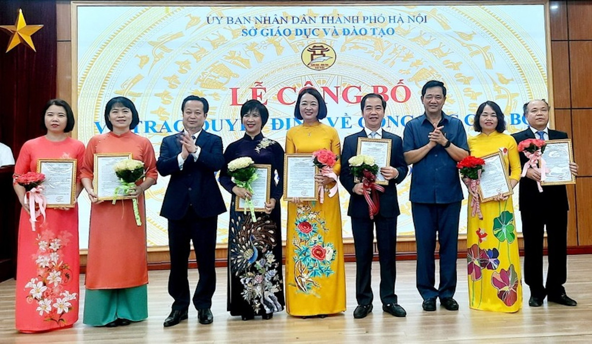 Nhân dịp này, lãnh đạo Sở cũng trao quyết định công nhận với 10 vị trí hiệu trưởng, phó hiệu trưởng mới với các trường ngoài công lập gồm: THPT Hà Đông, TH, THCS và THPT Vinschool, THPT Văn Lang, TH, THCS và THPT Archimedes, Đông Anh, TH, THCS và THPT Song ngữ quốc tế Horizon, THPT Kinh Đô, THPT Trần Thánh Tông.