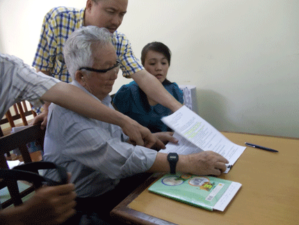 Ông Nguyễn Văn Lang (80 tuổi) được ông Dũng và bà Thu Bình ủy quyền cho các nguyên đơn được phát biểu và đưa ra những lý lẽ đối chất với phía bị đơn.