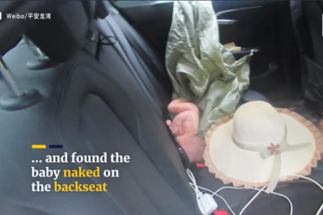 Chủ xe thường xuyên mở cửa sổ xe và sáng ra phát hiện có trẻ sơ sinh nằm khóc ở ghế sau. Cơ thể đứa trẻ vẫn còn nguyên dây rốn. Bé không mặc quần áo mà chỉ được quấn người bằng túi nilon.