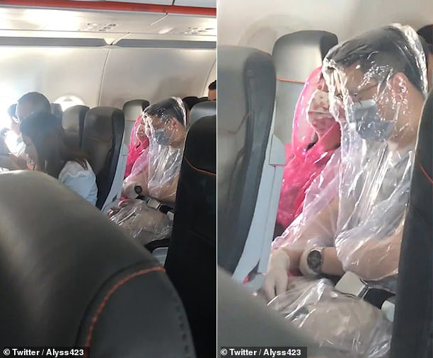 Video: Sợ lây nhiễm Covid-19, cặp đôi mặc áo mưa trên máy bay