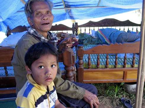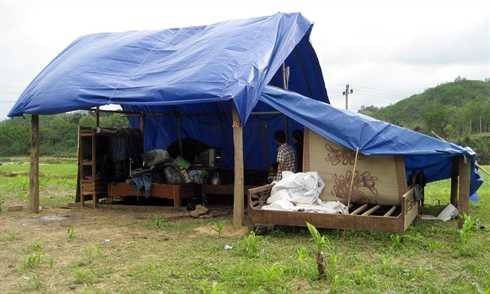 Cụ Alăng Kiên (SN 1941) là một trong 13 hộ dân phá nhà, bỏ làng đi tìm nơi ở mới nhưng rất khó khăn, bởi quỹ đất chật hẹp. Để có chỗ sinh hoạt, cất giữ đồ đạc, cụ Kiên cùng với gia đình 2 người con trai và một gia đình đứa cháu dựng một cái lều trên khoảng đất trồng ngô của người con trai đầu bên bờ sông Phô ở khu dân cư tổ số 2, thôn Bút Tưa. Căn lều rộng chừng 30 m2, tổng cộng có 4 hộ gia đình với hơn 10 người cùng khối tài sản mang theo.