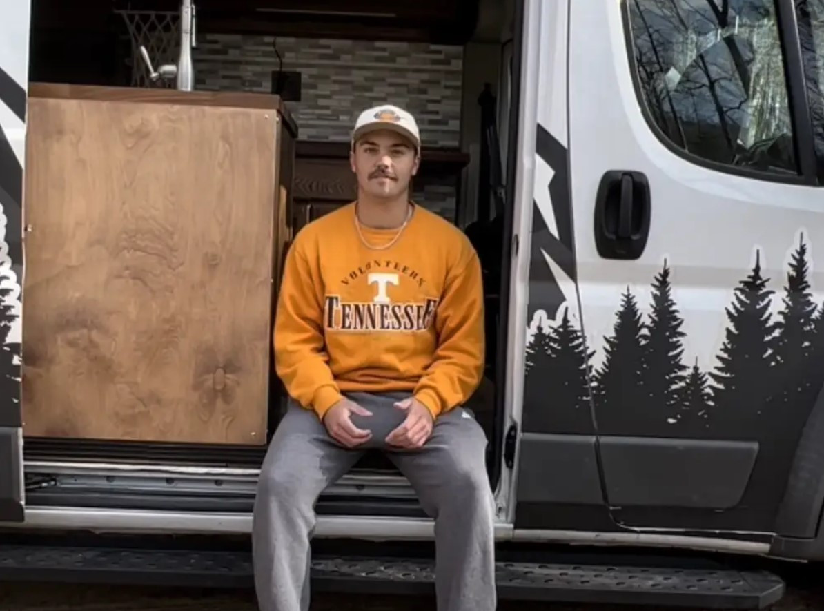 Bố của Tranbarger mua chiếc xe van Ram Promaster đời 2015 giá 16.000 USD với một điều kiện: con trai phải chịu mọi chi phí cải tạo thành nhà ở di động.