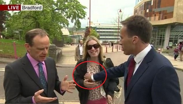 Phóng viên Ben Brown của kênh BBC vô tình chạm vào ngực một phụ nữ qua đường khi cô này đột ngột chen vào cuộc phỏng vấn trực tiếp và người phụ nữ này đã rất bực tức đánh vào tay phóng viên rồi bỏ đi.
