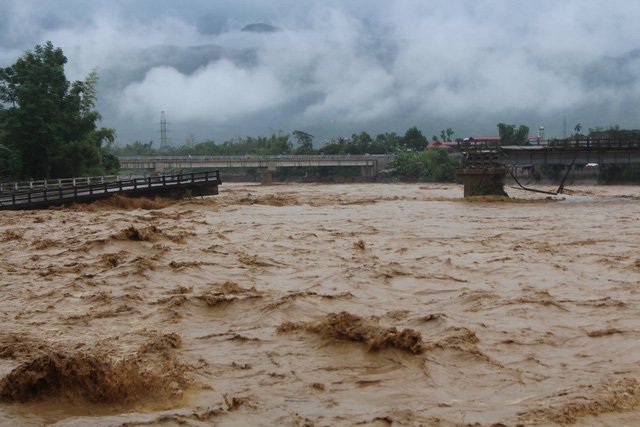 Cầu Ngòi Thia ở Yên Bái bị gẫy sập do mưa lũ.