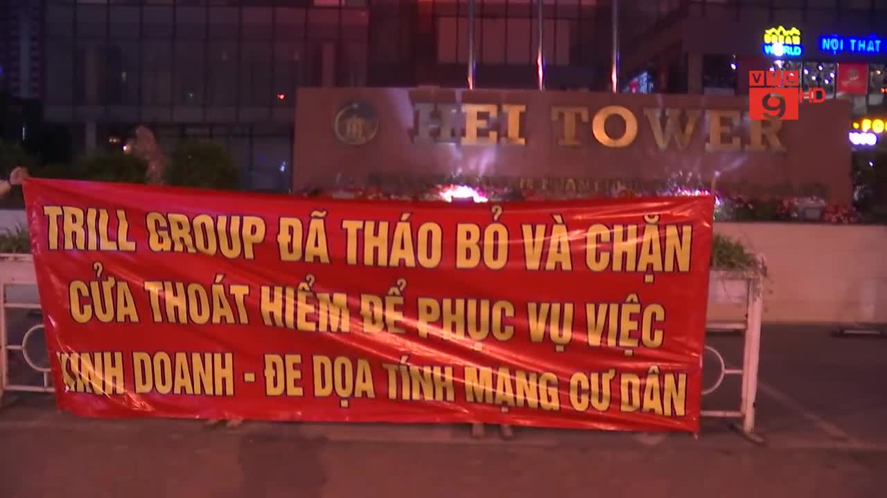 Tối 28/3, cư dân chung cư cao cấp Hei Tower (số 1, Ngụy Như Kon Tum, Thanh Xuân, Hà Nội) phải xuống đường căng băng rôn để tự cứu mình vì sợ một thảm họa Carina tương tự sẽ diễn ra.