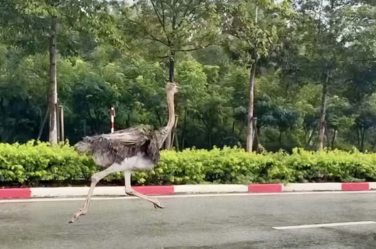 Việc này khiến người đi đường thích thú khi lần hiếm hoi họ thấy đà điểu chạy bộ ngoài đường, chứ không phải trong sở thú.