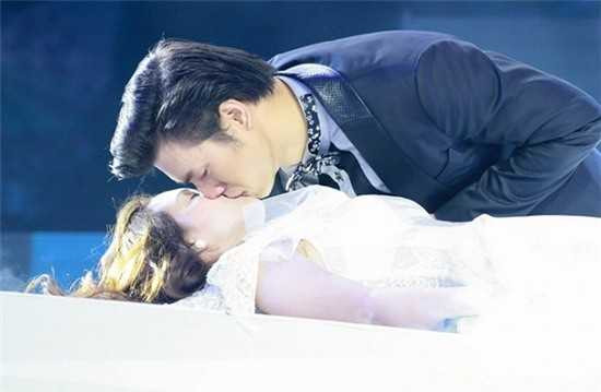 | Nhan Phúc Vinh và Đinh Hương "khóa môi" trong tiết mục Romeo & Juliet. |
