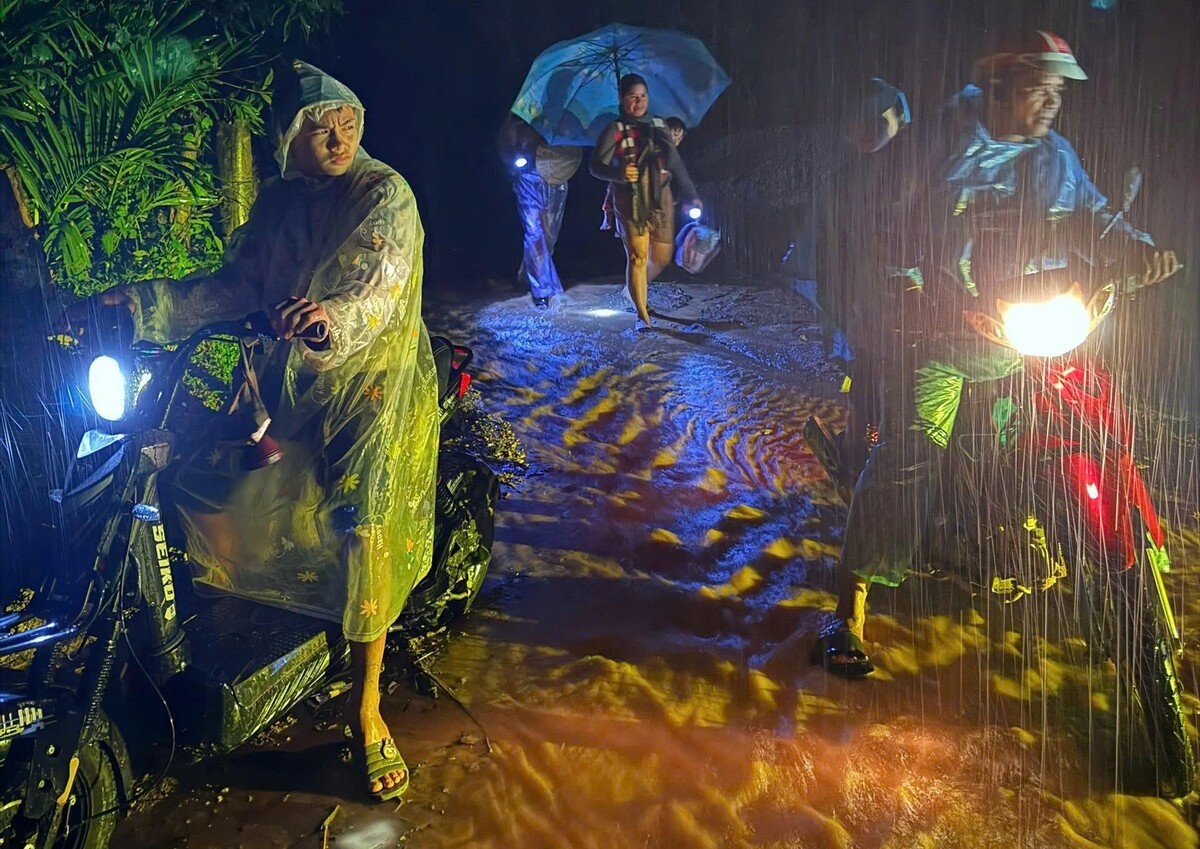 Cũng trong đêm nay, tại Quảng Ngãi, lực lượng dân quân, công an cõng nhiều người già và trẻ nhỏ sơ tán ngay trong đêm triều cường dâng cao, gây ngập sâu nhà cửa.