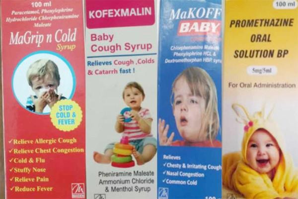 Các loại siro ho được đề cập là Promethazine Oral Solution, Kofexmalin Baby Cough Syrup, Makoff Baby Cough Syrup và Magrip N Cold Syrup.