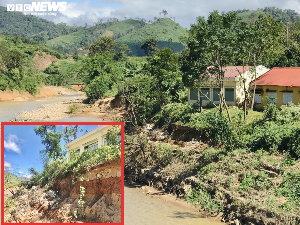 Theo ông Nguyễn Phúc Đoan, Chủ tịch xã Đăk Pxi (huyện Đăk Hà), điểm trường sạt lở nằm ở thôn 7, nằm cạnh sông Đăk Pxi. Thời gian qua, do mưa bão nên điểm trường mầm non bị ảnh hưởng, nguy cơ sạt lở cao, phải di chuyển sang nhà rông của làng để dạy học.