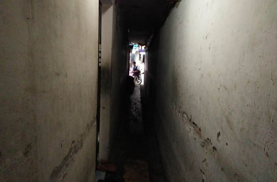 Trong con ngõ không tên của hộ gia đình bà N. có tới hơn 10 hộ dân cùng chung sống. Tất cả các hộ gia đình trên đều có diện tích rất nhỏ, dưới 10m2, hiếm có nhà nào có diện tích trên 30m2. Thậm chí, có "nhà" chỉ vài m2 được xây vắt vẻo trên thành tường, không có diện tích mặt đất. Những "căn nhà" càng nhỏ được định giá càng rẻ.