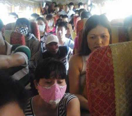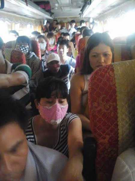 | Hơn 90 người chen chúc trên chiếc xe 45 chỗ ngồi (Ảnh: Hương Nguyễn/VnTinnhanh) |
