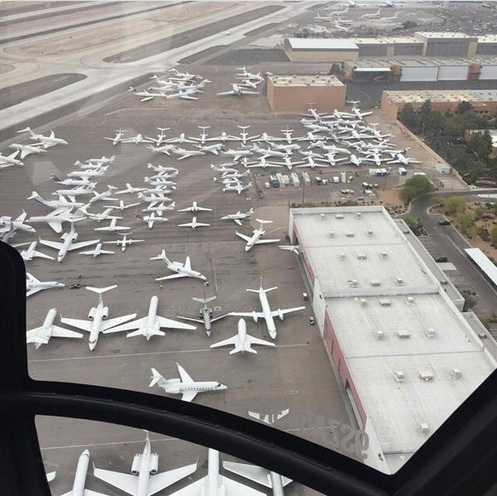 | Hàng trăm chiếc máy bay của đại gia được đỗ la liệt tại sân bay Las Vegas trước trận đấu thế kỷ. |