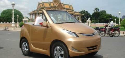 Campuchia vừa ra mắt chiếc xe điện đầu tiên của xứ sở chùa Tháp, mang tên Angkor EV 2013, sản phẩm của nhà sáng chế địa phương Nhean Phaloek chạy được 60km/giờ.