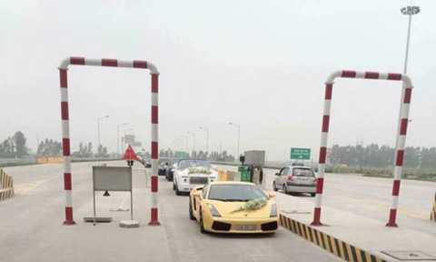 | Đoàn xe di chuyển qua điểm thu phí |