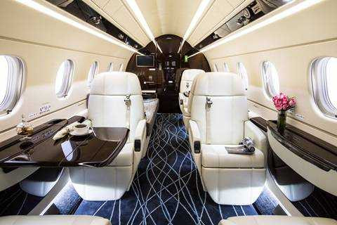 Nội thất bên trong là những vật liệu tốt nhất. Thiết kế không quá cầu kỳ, rất đơn giản nhưng vẫn sang trọng. Các thiết bị được điều khiển bằng màn hình cảm ứng hoặc hệ thống iPad/iPhone. Đặc biệt, máy bay có trang bị phòng tắm riêng. Ngoài ghế để hội họp còn có ghế sofa dài dùng như giường ngủ, hệ thống giải trí hiện đại.