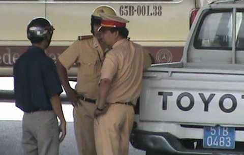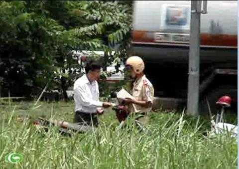 Thái độ 'dấm dúi' khi xử lý vi phạm giao thông của CSGT Q.9 (ảnh: N.D)