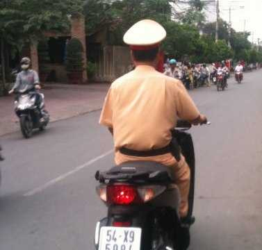 CSGT cũng không đội mũ bảo hiểm khi đi trên đường (ảnh: internet)