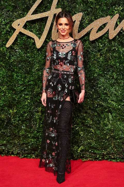 | Cheryl Fernandez Versini gây ấn tượng mạnh tại Lễ trao giải British Fashion Awards 2015 không chỉ bởi chiếc đầm xuyên thấu kết hạt diêm dúa của Topshop mà còn có đôi giày bốt cao trên đùi thêu họa tiết hoa sequin của Sergio Rossi. |