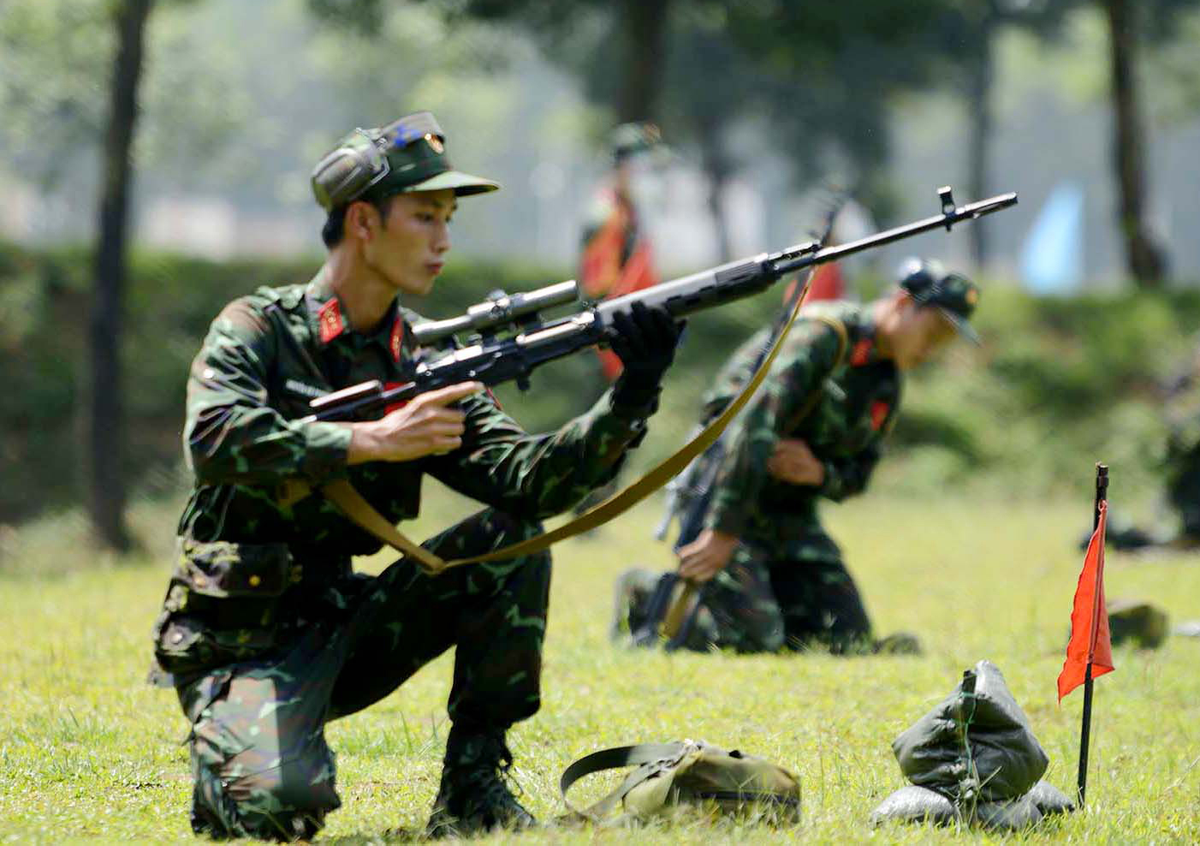 Xạ thủ bẳn tỉa Việt Nam huấn luyện với súng trường bắn tỉa SVD. (Ảnh: Quân đội Nhân dân)