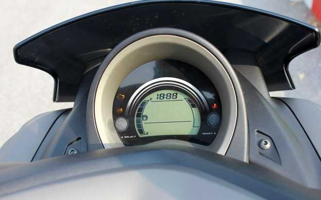Cụm đồng hồ công tơ mét được chiếu sáng bằng đèn Led trắng, bề mặt chống lóa giúp cho người lái dễ dàng quan sát dù trời nắng chói chang hay ban đêm. Thiết kế của cụm đồng hồ dạng bán hình tròn, hiển thị đầy đủ các thông số như đèn báo xăng, tốc độ, vòng tua máy, đèn tín hiệu.