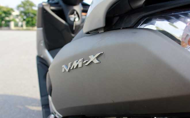 Logo chữ "NM-X" làm bằng kim loại sáng, in dập nổi trên phần thân xe.