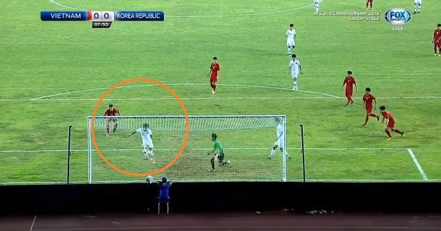 Trong cuộc đối đầu với U19 Hàn Quốc, U19 Việt Nam bị đối thủ dồn ép ngay sau tiếng còi khai cuộc và lẽ ra phải thủng lưới từ sớm nếu không có "thần may mắn" hỗ trợ trong tình huống ở phút thứ tám. Đó là pha bóng mà cú sút của Oh Se Hun đưa bóng chạm 2 cột dọc nảy ra ngoài, trước khi Yim Jae Hyeok băng vào đá bồi trúng xà ngang ở khoảng cách chỉ chừng 3 mét.