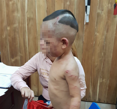 Bé H. bị đánh đầy thương tích. (Ảnh CTV)