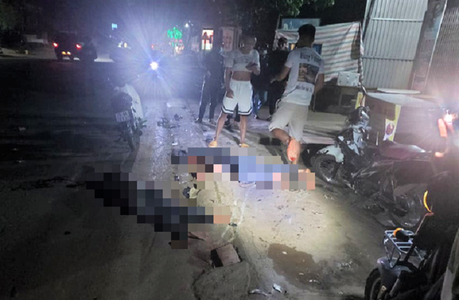 Sau cú tông mạnh, nam sinh T.M.P. ngã xuống đường chết tại chỗ, 3 người khác bị thương, các phương tiện bị hư hỏng nặng.