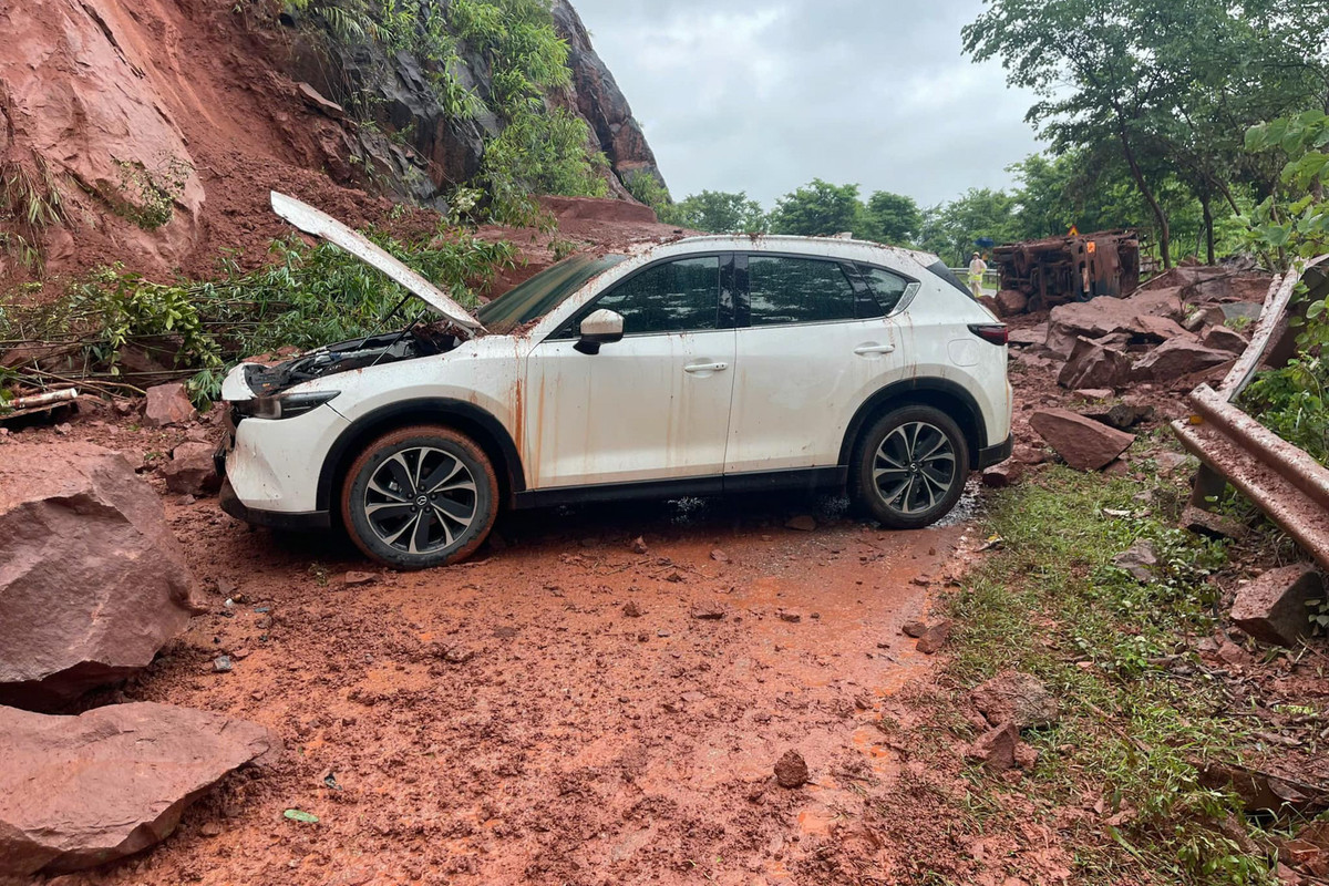 Tại hiện trường 2 phương tiện bị hư hỏng. Thời điểm xảy ra vụ sạt lở, trên chiếc xe tải có 3 người, xe con có 5 người. Tất cả đều bị thương nhẹ.