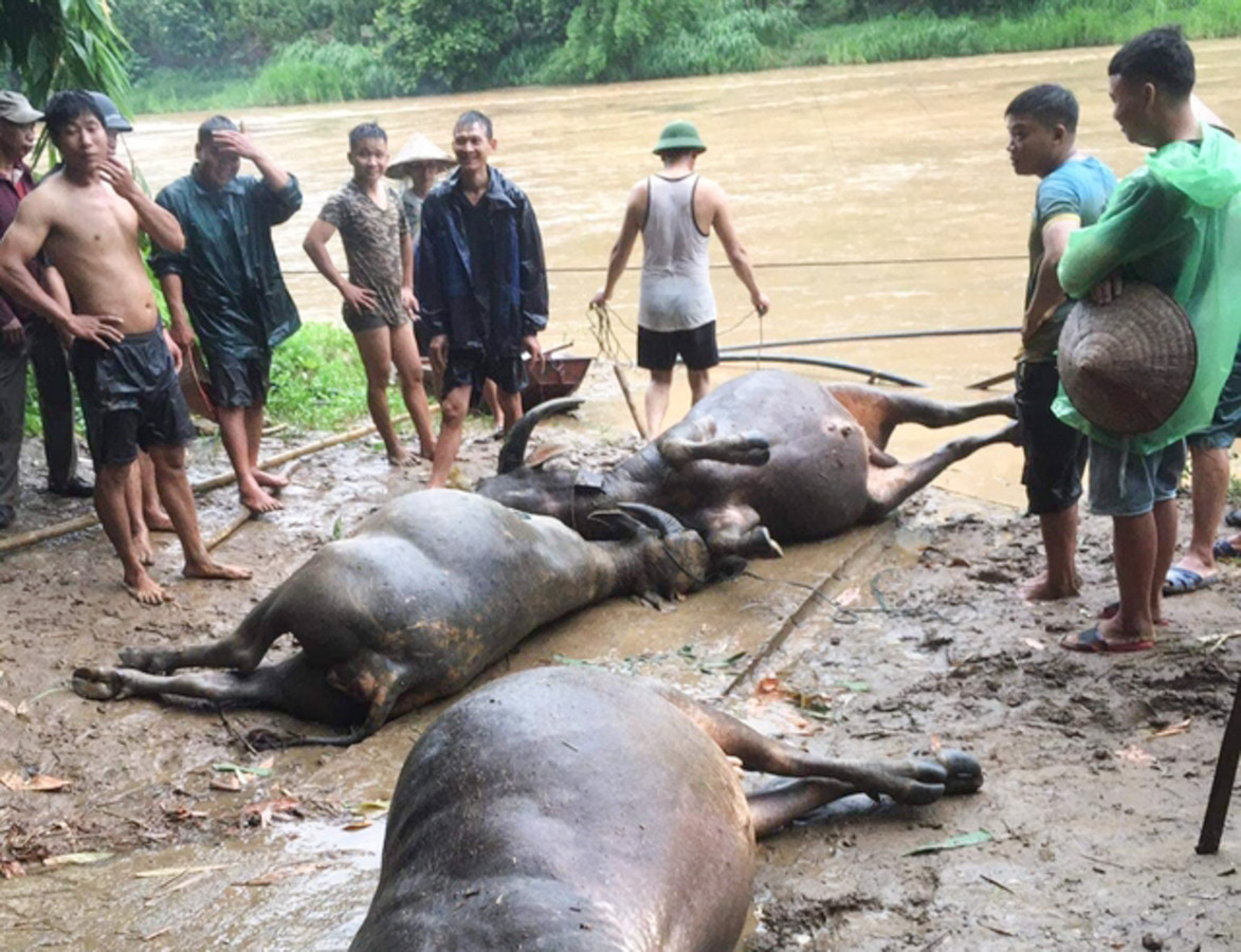 Mưa lũ cuốn trôi 3 con trâu của người dân. (Ảnh: S.L)
