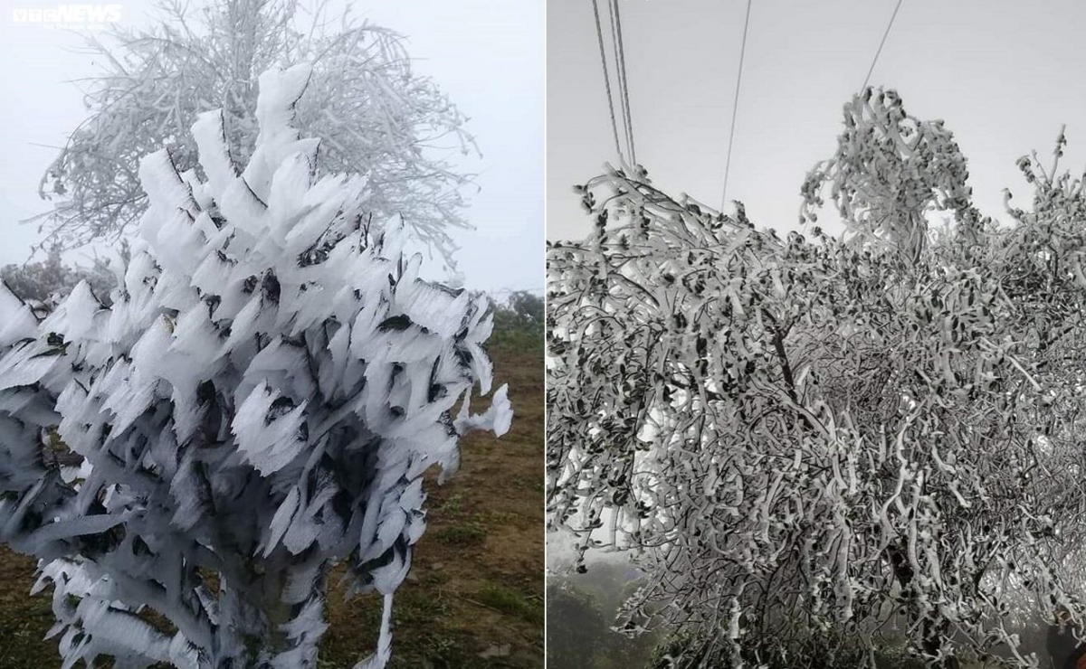 Từng đám băng dày phủ kín cành cây tạo nên khung cảnh lung linh, ấn tượng.