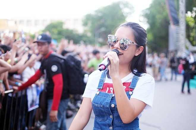 Những bạn trẻ cũng bất chấp thời tiết oi bức để có cơ hội đến gần thần tượng. Biểu ngữ và bảng hiệu ngập tràn dưới sân khấu để cổ vũ cho nam ca sĩ 22 tuổi.