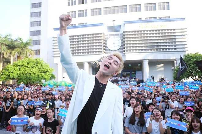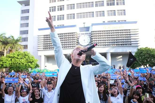 Trước đó, hàng nghìn người hâm mộ của nam ca sĩ gốc Thái Bình đã đứng đợi anh từ cổng trường. Đáp lại tình cảm của fan, Sơn Tùng M-TP nhiệt tình tham gia các trò chơi, chiều theo những yêu cầu của đám đông.